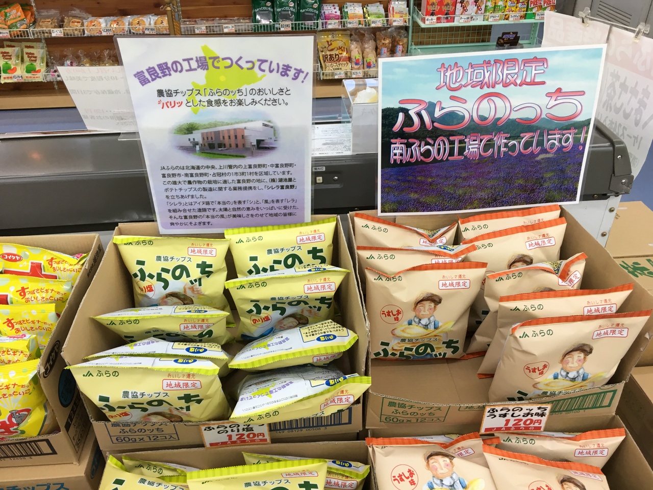 レストランは小規模ですが、物産コーナーのお土産は充実していました。野菜類とかはなく、観光客向けのようでした。湖池屋と地元農協が共同で立ち上げた農協チップスを売っていました。うすしおとのりしおがあり、美味しかったです。