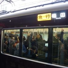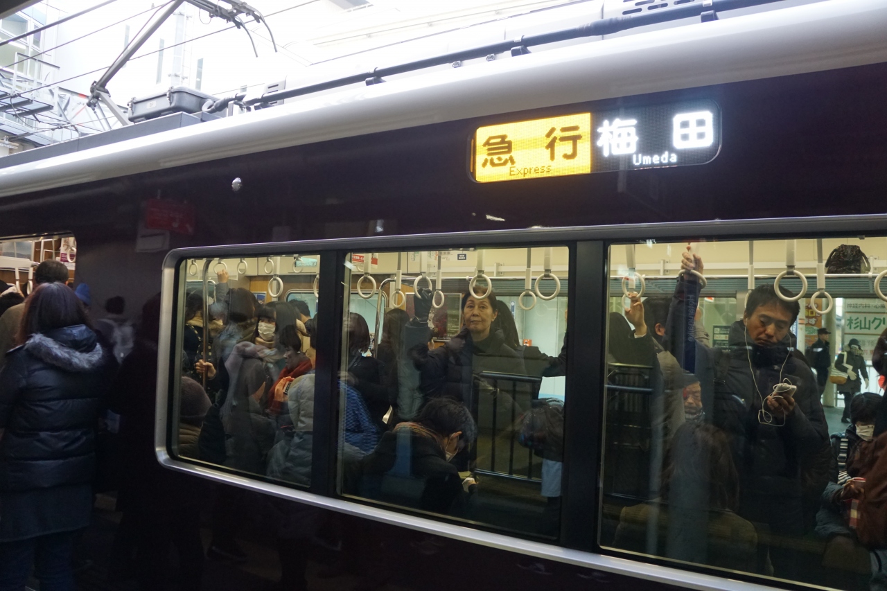 大阪空港から大阪市街に出るのは、モノレールでひと駅目の宝が池駅から阪急宝塚線に乗り換えて梅田に向かうのが最短です。濃い茶色の車体の電車と「タタタ、タンタンタン」という列車が到着する時にホームで流れる音を聞くと大阪に来たんだなという気持ちがする。とってもお馴染みの電車です。