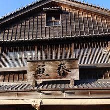 おはらい町の入り口にある魚春。お土産を各種取り揃えたお店で、お土産探しにもってこいの風情ある外観のお店で干物などの海産物もありました。地元の伊勢醤油、伊勢うどん、地ビール、地酒など幅広く取り扱いがあります。