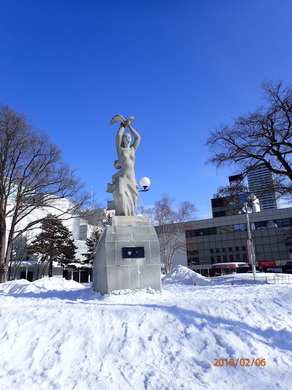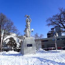 雪まつりに行ったときに寄りました。わくわくホリデーホールの前にあります。けっこう大きい像です。しっかり雪かきされていてちゃんと見えるようになっていましたが、足場が悪く、もう少し近くまで行きたかったけれど行けませんでした。像についての説明があるかな~と思ったのですが見つけられませんでした。