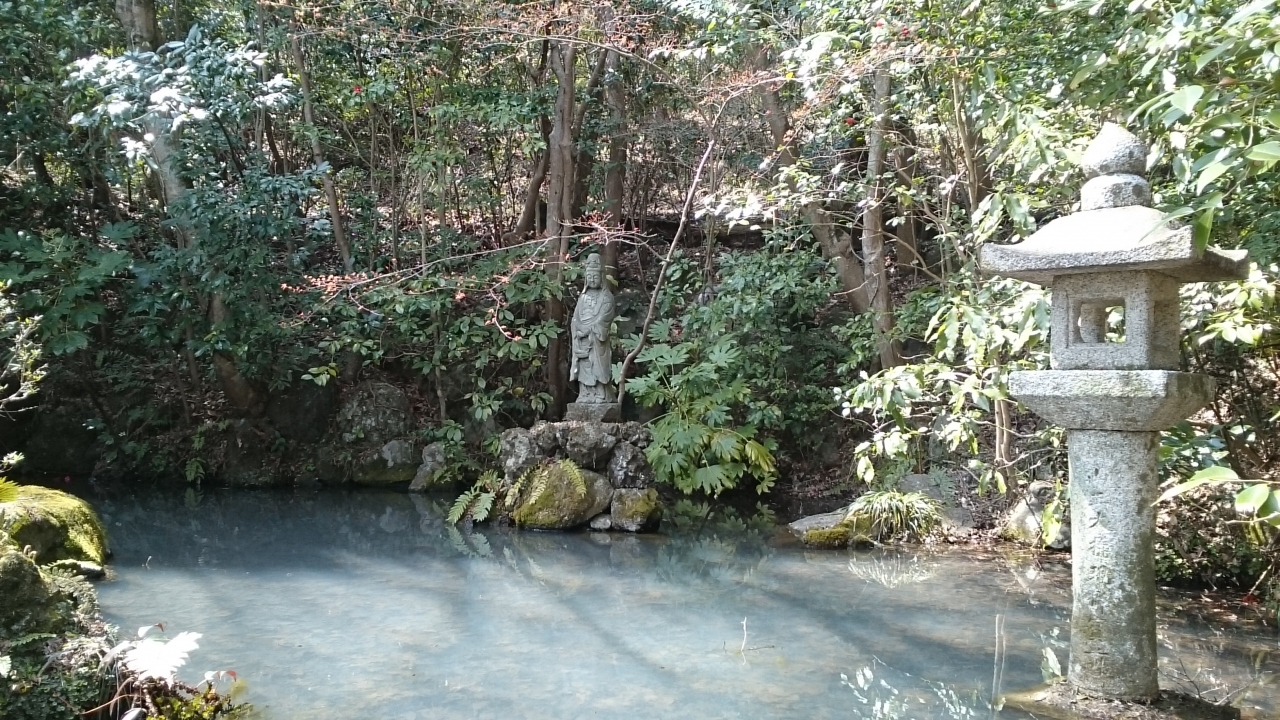 また、西行が出家した時に鏡の代わりにして頭を剃ったと伝えられる「鏡石」や、「不動堂」の奥の岩窟の中に祀られている石造の不動明王像、その近くの池に立つ「魚藍観音」など…静かな境内をゆっくり歩いて楽しめました。