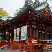 大歳御祖神社は、静岡浅間通り商店街から浅間神社の境内に入ってすぐの正面。赤い大きな神門と拝殿が目を引きますが、残念ながらこれは鉄筋コンクリート造り。戦後に再建されたものです。