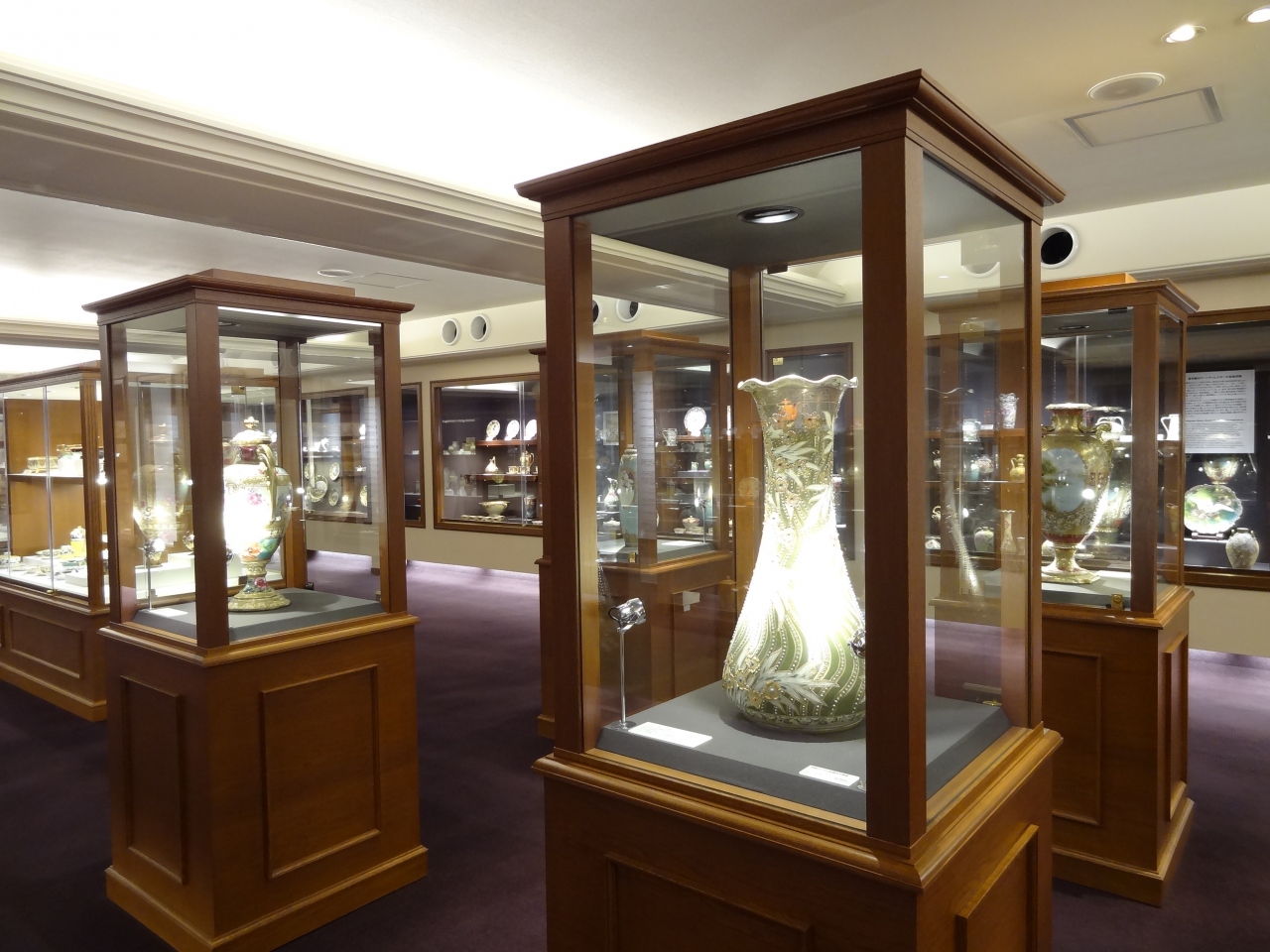 広大な敷地にあり、6本の巨大な煙突が並ぶ広場に赤レンガ建築の建物が建ち並んでいます。クラフトセンターの1・2階は製造と絵付けが中心、撮影は不可です。工房の様子を真近に見たり、絵付けの体験もできます。3・4階はミュージアム、撮影は可能です。ノリタケの超高級な洋食器が展示されています。アメリカのプロ野球選手が訪れてお皿にサインを残しています。他には、ノリタケのショップやレストランなどの施設があるので、ショッピングや食事もできます。噴水広場周辺の赤レンガ建物の脇には飲食ができるスペースがあります。これから、暖かくなる時期にはビールなどを飲んでゆったりした時間を過ごすのに最適なスポットになるでしょう。