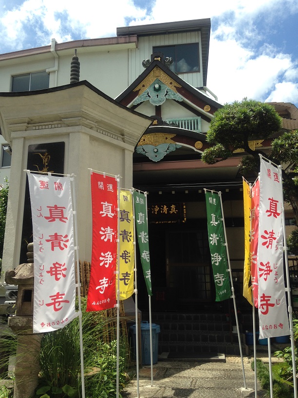 住宅街の中にあり正面から見るとお寺と住宅が合体したように見えるちょっと変わったお寺です。
