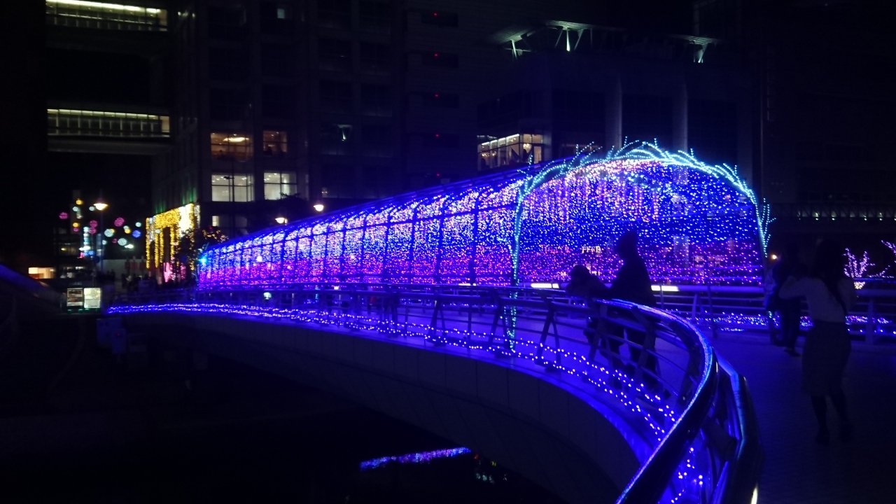 小倉に旅行したときに鴎外橋を渡りました。橋の真ん中には光のトンネルのイルミネーションが設置されていました。夜になるとイルミネーションが点灯され、鴎外橋が光のトンネルになりました。その光景は幻想的で印象に残りました。