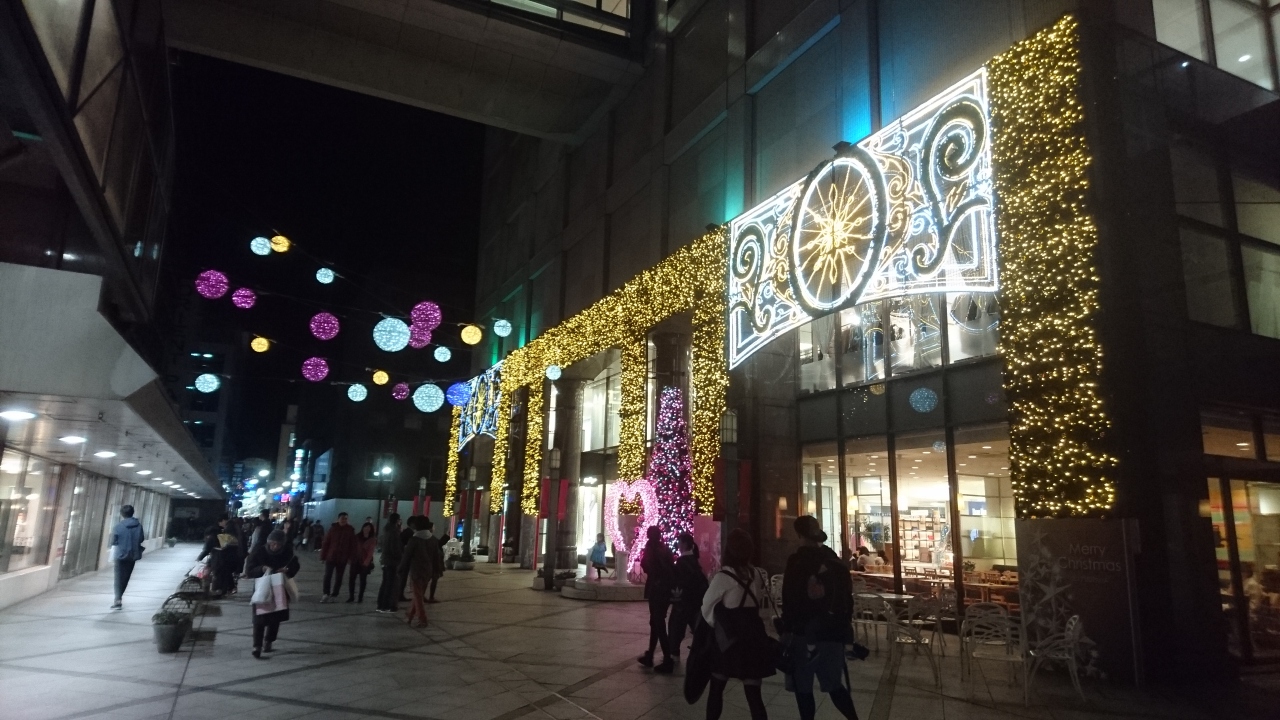 小倉に旅行したときに井筒屋 (小倉店)に行きました。井筒屋小倉店は戦前に開業した小倉の老舗百貨店です。その連絡橋からは小倉イルミネーションを上から見ることができました。また、外に出るとクリスマスツリーがあってここでもイルミネーションがありました。