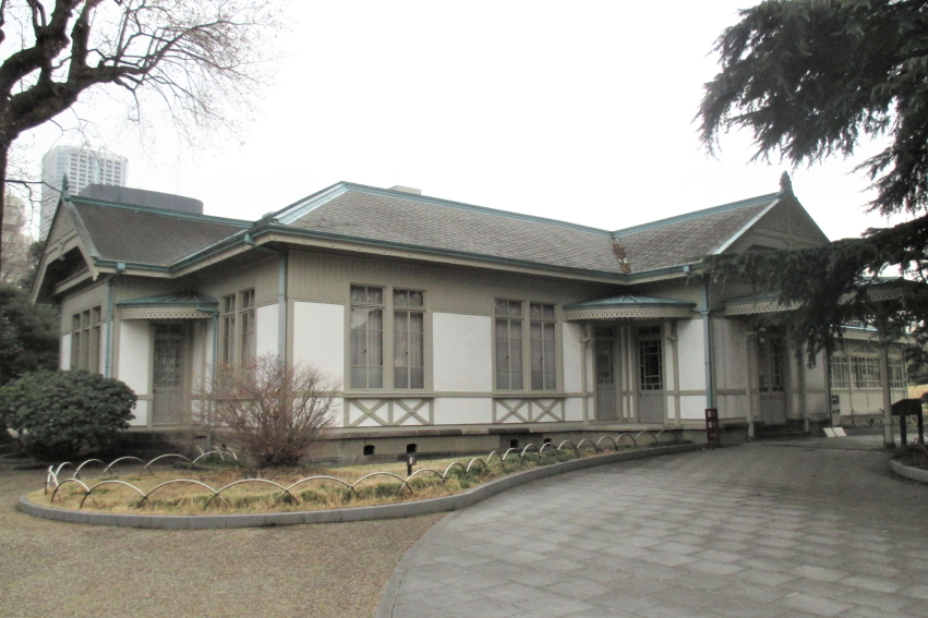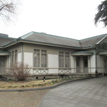 天皇家や皇族が温室を訪れる際の休憩施設として明治29年(1896年)に建設されたものです。前に池があったり、庭園だったりと、もっと景色の良いところの方が良かったのではないかと思いましたが、もともとの目的が温室の見学ですから、現在の温室養生施設となっているすぐ近くのこの場所が最適場所だったのですね。それだけ温室栽培とは皇族などの特権階級だけが楽しめるものだったのでしょう。