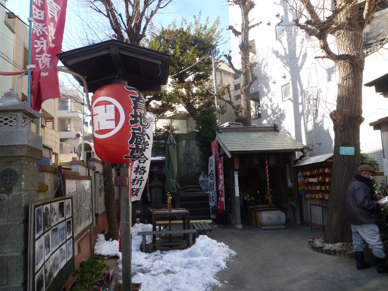 早稲田通りのビルの谷間にありました。小さな敷地ですがしっかり手入れがされているようで残雪もきれいに固められ、お参りする人の便宜を計られています。