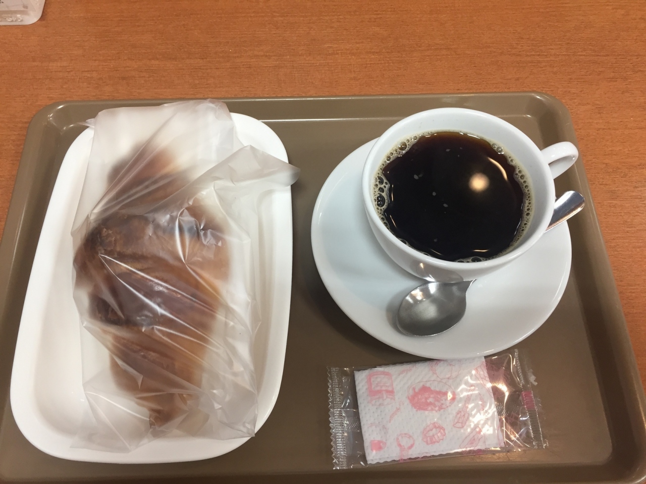 イートインがあったので コーヒーをオーダーし 発酵バターのクロワッサンを購入し 待ち時間をつぶした。