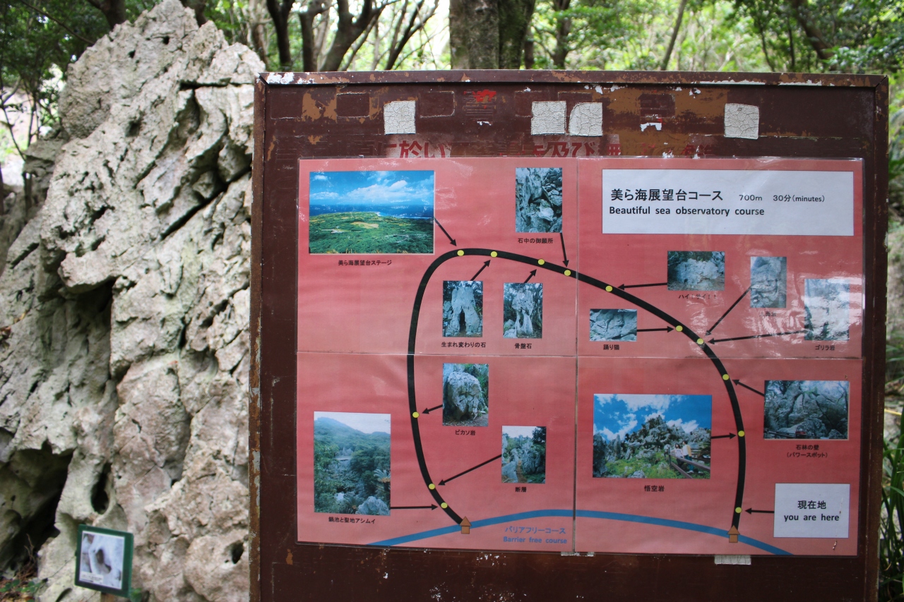 一番人気の美ら海展望台コースは 700m約30分の所要時間でしたが、写真を撮ったりパワーが与えられるという石を撫でてみたり・・となると、小一時間はみておいた方がイイように感じました。
