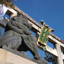 北野天満宮一の鳥居です。今出川通りに面して、鳥居前が少し広場になっており、この広場を中心に道路が六差路になっています。パワーの集中が感じられる様な場所です。大きな狛犬と鳥居が非常に立派で、気分が高まります。境内はかなり広く、ここから本殿まで少し歩きますが、気持ちを落ち着けるのに良い距離です。