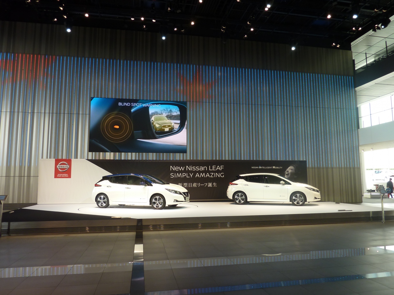 日産車が並ぶギャラリー。 最新の日産車が展示されており、(もちろん動きませんが)実際に乗ってみることができます。また、日産の歴史を学ぶことができるコーナーや日産グッズを扱うショップもありました。非常に広い空間にゆったりと車が展示されているので、ゆっくりと車を見ることができました。