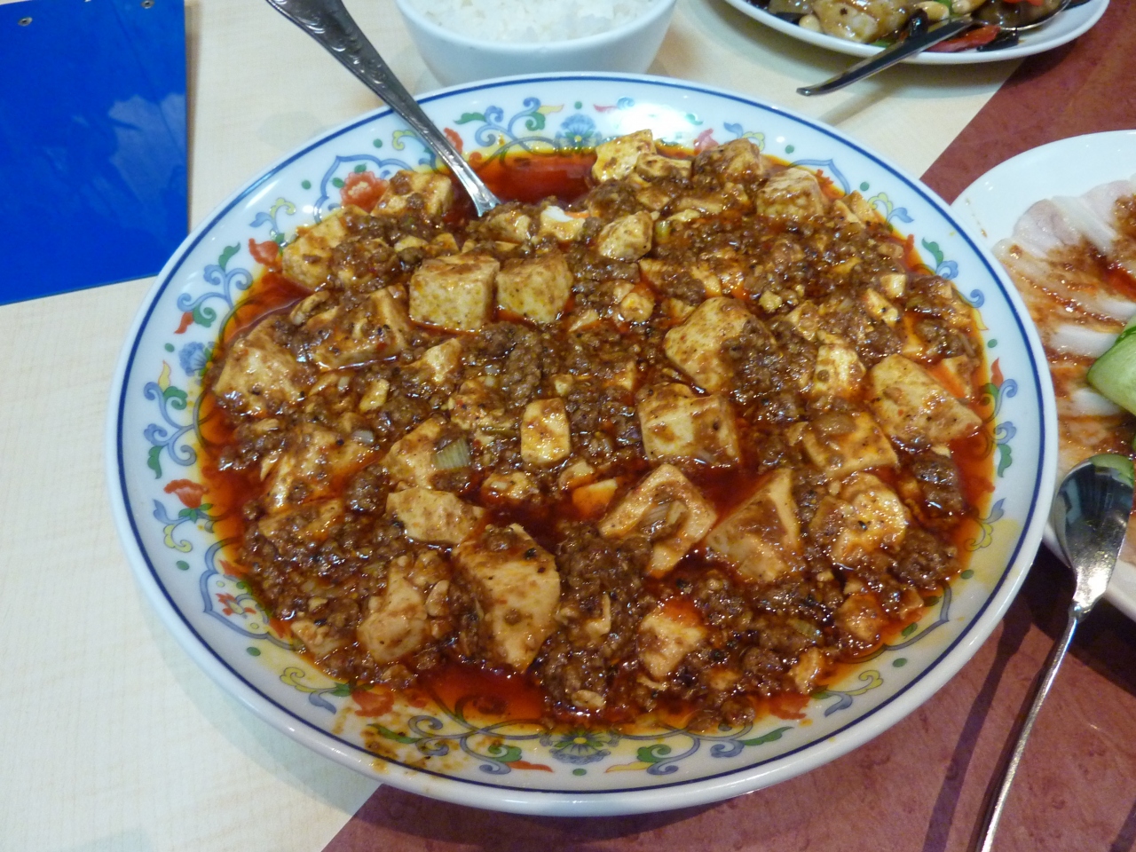 景徳鎮は本格的な四川料理のお店で、比較的唐辛子の効いた辛い料理が多くありました。有名な麻婆豆腐はノーマルと本場の激辛がありますが、激辛も食べられないというほどではなく、白飯と一緒に美味しくいただくことができました。白飯の味が少し悪かったのが残念でしたが、中華料理店ではこんなものでしょうか・・・