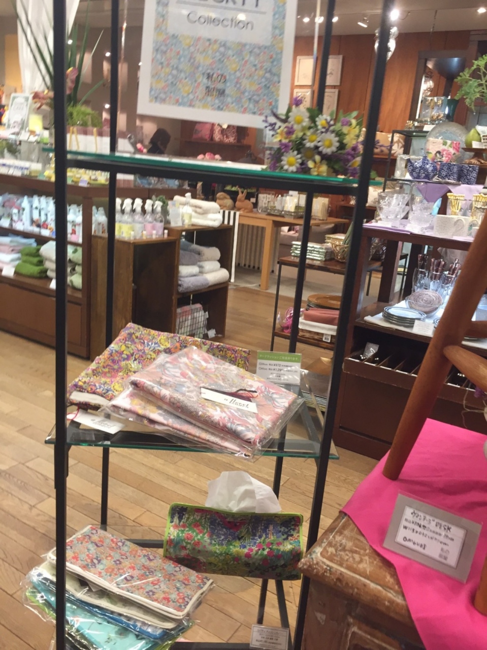 自由が丘正面口から歩いて5分ほどの場所にあるお店です。少し年齢の高めの人用のお店ですが、リバティーの商品が出ていて思わず立ち寄りました。あまり種類は多くなかったですがクッションカバーが可愛く購入しました。食器などシンプルなものが多く使いやすそうだったのでまた機会があればこちらのお店にお買い物に行きたいと思います。