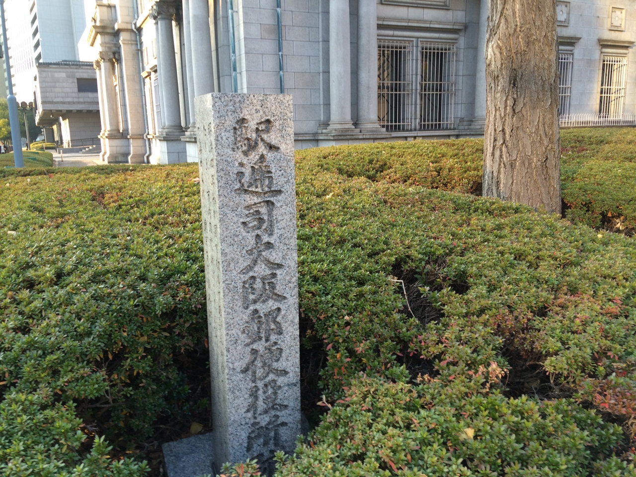 何気なく写真を撮っていたら偶然見つけた、「駅逓司大阪郵便役所跡」の石碑。
