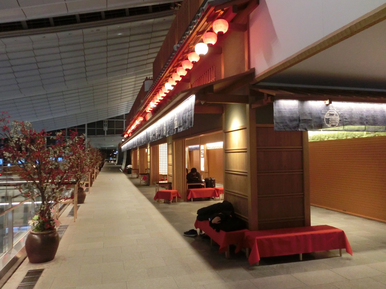 成田ほどではありませんが、羽田も深夜・早朝便が増えています。特に空港の発着時間が成田より長いので、大勢のLCCの客がこの時間に滞留していることもあり、江戸小路でも対応してオープンしているお店が多く助かります。