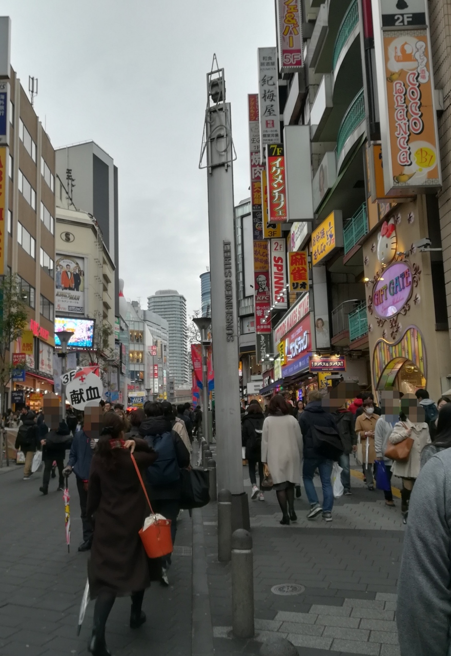 池袋駅からサンシャインシティの表示に従ったらサンシャイン60通りに出ました。お店が多いので人も多く、夜ならさらに賑やかだろうと思いました。東急ハンズがあったので立ち寄りましたが、そこから先にはあまり人がいなかった。献血の募集をしていたのでやはり人が集まる場所なんだと思います。