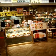 JR新大阪駅構内にある商業施設(エキマルシェ新大阪)にあります。大阪発祥の老舗オムライスのお店で、昔ながらのチキンオムライスは、ケチャップライスにふわふわ玉子がよく合う懐かしい味です。イートインスペースもあるため、その場で食べることもできますが、テイクアウトして新幹線の車内で食べることもできるのでオススメです。