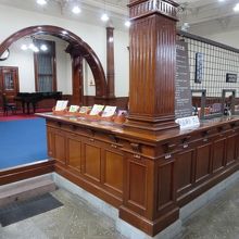 近江町市場を出て、ひがし茶屋街に向かう途中にありました。外は地味な歴史的建造物ですが、中はシックな昔の銀行が保存されています。磨きこまれて木目が光るカウンターが素敵でした。高い天井と白壁が重厚な感じです。無料で見られるのでお得な感じがしました。