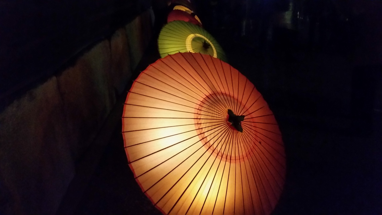 特にライトアップされた傘は、ずらっと並べられてるだけで、こんなに可愛いんだと驚きました。