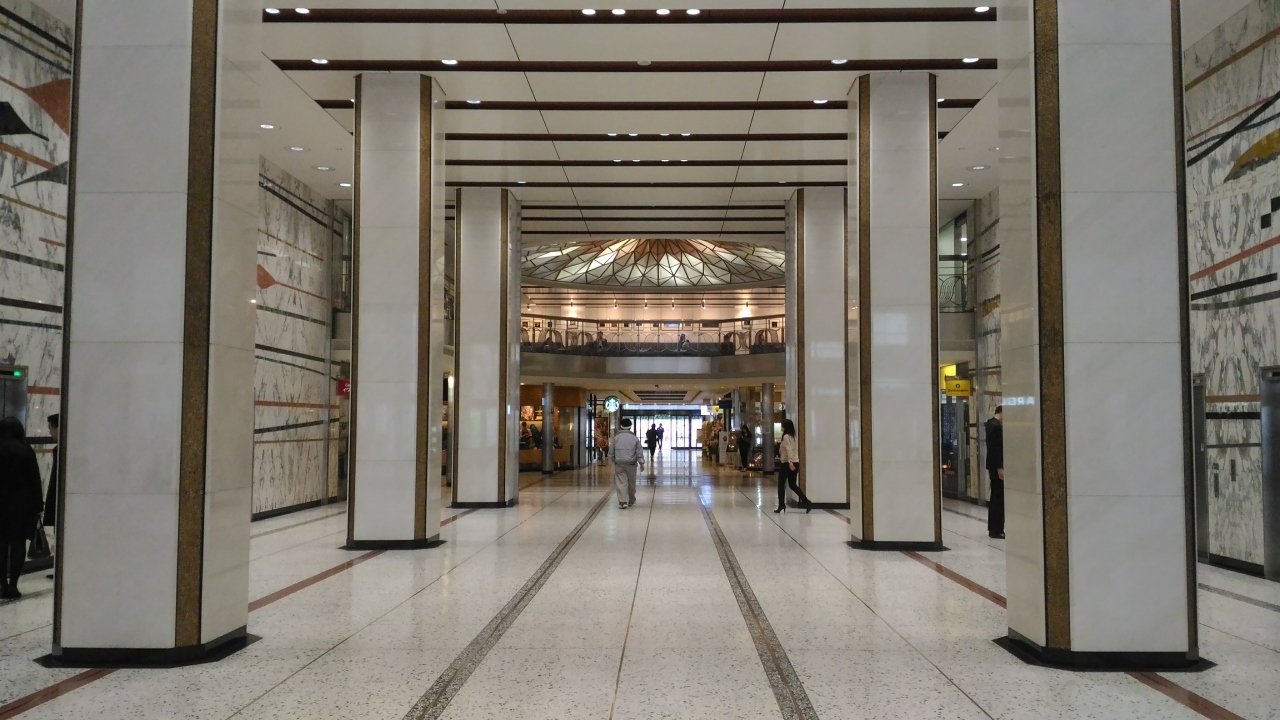 場所は東京国際フォーラムの西側、三菱一号美術館の道路向かいです。”新東京”という””大きな”名前ですが、ビル自体はさほど大きくはありません。それもそのはずで、竣工は1963年という歴史あるビジネスビルです。内装は改修されているようでとてもきれいでした。