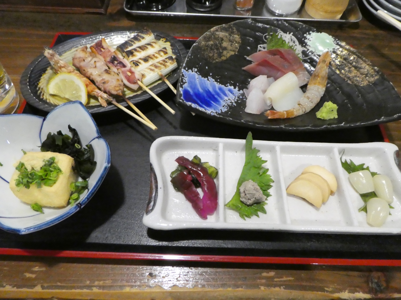 鳥取駅前にある居酒屋さん。鳥取をはじめ、山陰で採れる名物を少しずつ盛り付けた「山陰うまいもんセット」を注文。一人で訪れる出張族と思われる人は、ほとんどこれを注文しているようでした。猛者エビやイカ、ラッキョウなど、カニ以外の名産は一通り楽しめると思います。地酒も飲み比べセットがあります。味も雰囲気も有線の選曲もよく、コスパのよい店だと思いました。