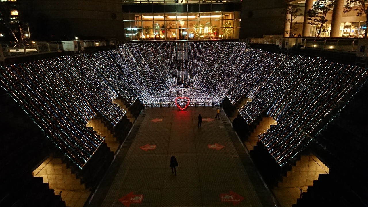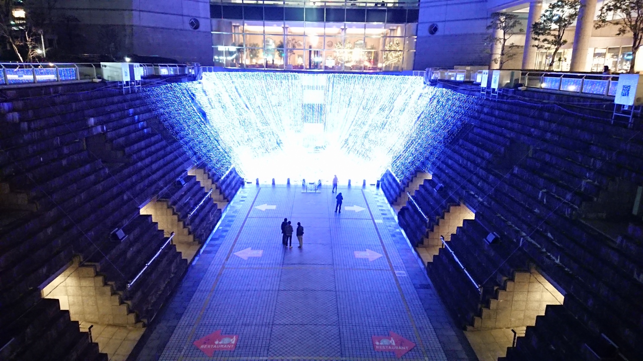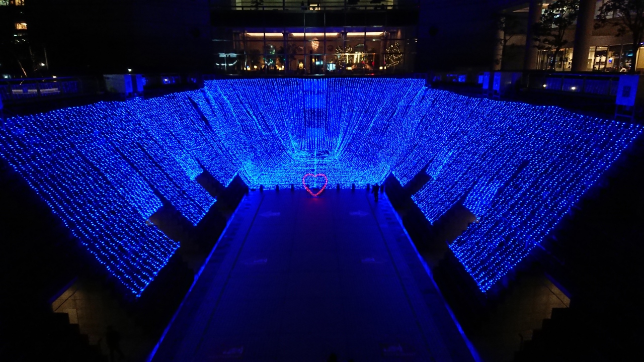 みなとみらいのドックヤードガーデンで開催されているイルミネーションは、2月になってもやっていました。全体が青いイルミで覆われていて綺麗ですが、10分ごとにパターンが変わるのも面白いです。見下ろす位置の橋から、ドックの中から、レストラン街の窓越し、いろんな場所から眺められます。