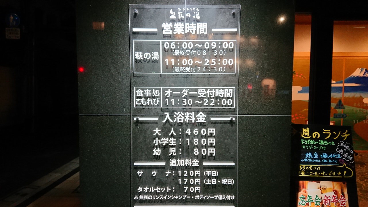 2017年にリニューアルされた萩の湯は銭湯料金にも関わらずお風呂の種類が充実しており広くて快適。