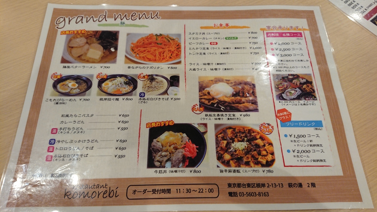 鶯谷駅から4~5分くらい歩いたところにある荻の湯に併設されている食事処。