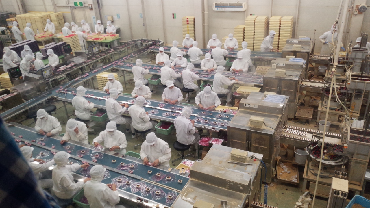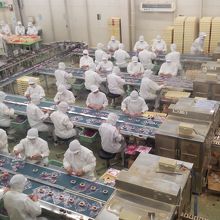 信玄餅の詰め放題のある桔梗屋さんの本社です。詰め放題は、早朝から並ばないと出来ない事と、消費期限が短いと聞いていたので、最初からパスしました。先ずは工場見学コースへ行きました。信玄餅の生産工程を見学する事ができます。ひとつづつ手作業で包んでいる工程には、ちょっと驚きました。