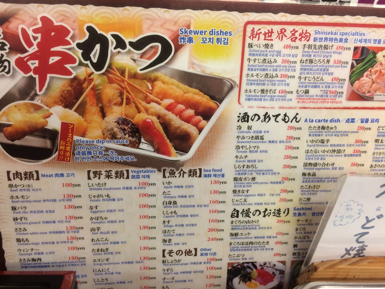 カウンター席が長く、広い店内でした。お決まりのキャベツをソースに二度付け禁止の表示が店員のTシャツの背中にもプリントされていました。串カツメインでしたが、味は普通といったところでしたが、牛カツが美味かったです。