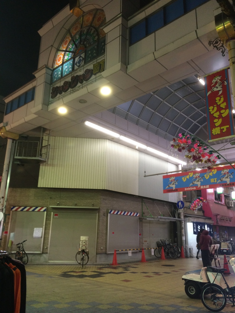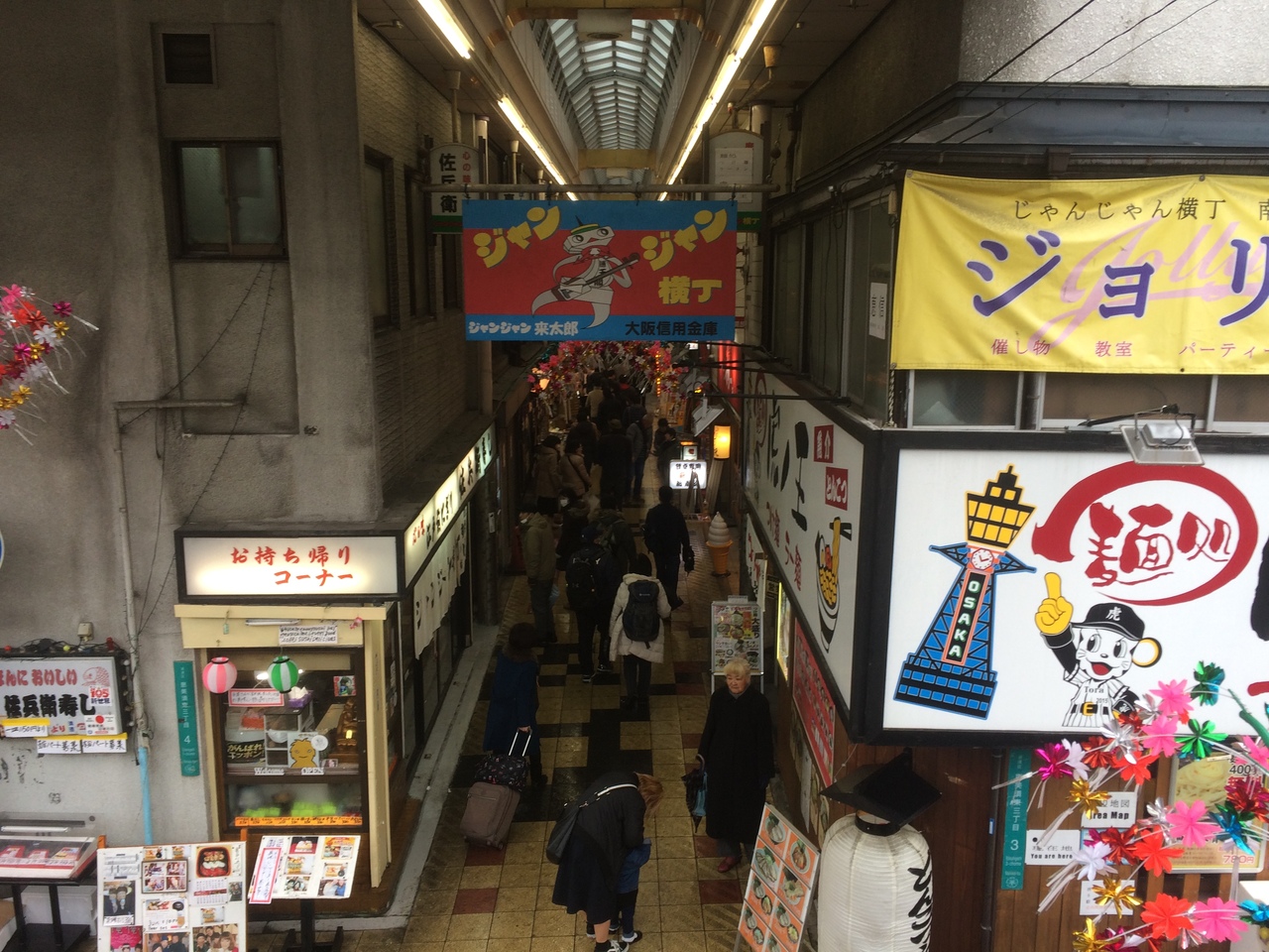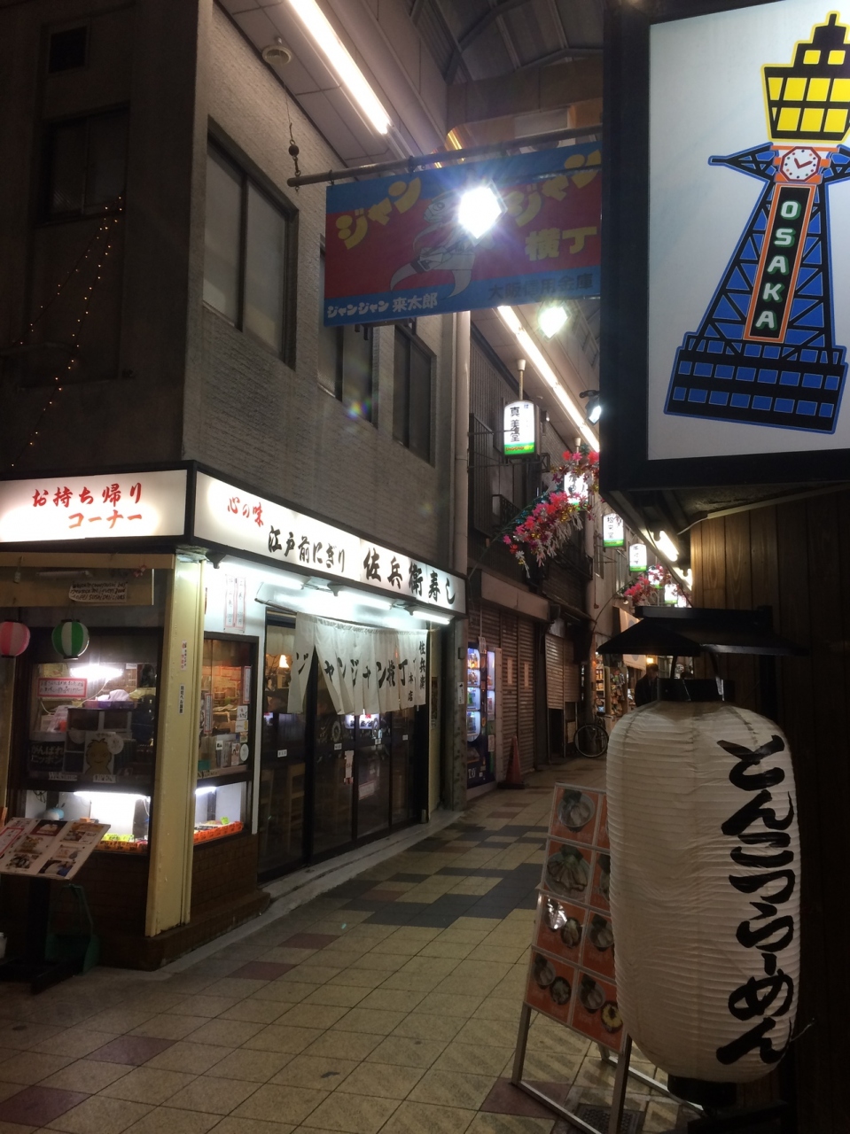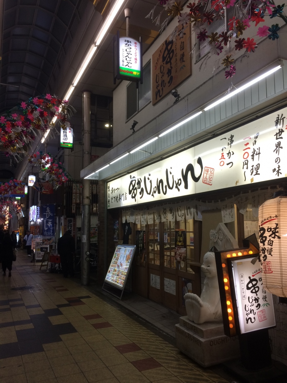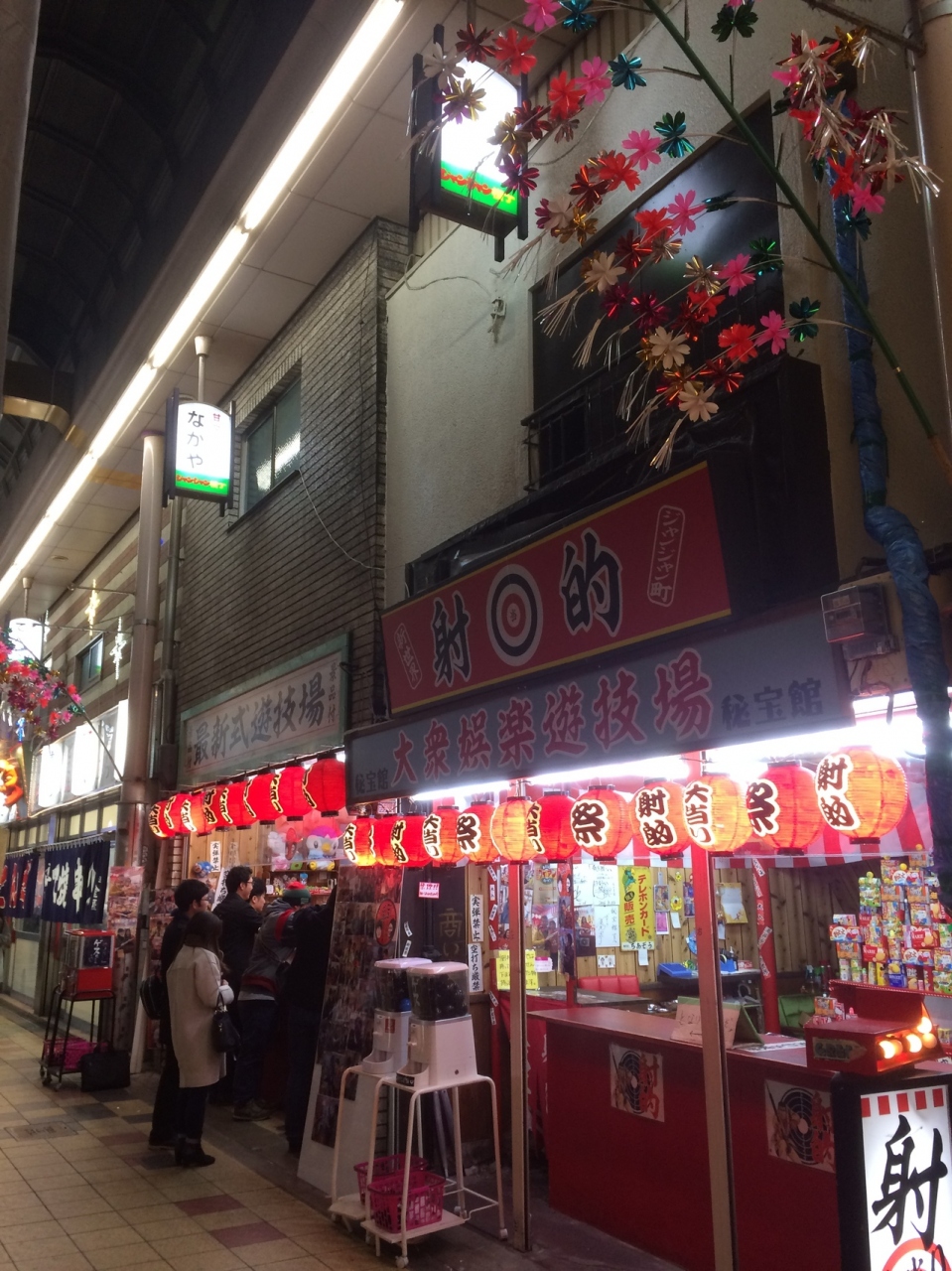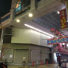 200メートルぐらいある細い通りの左右に店がひしめき合っていて、串カツ屋、寿司屋、ゲームセンター、将棋が出来る店が、射的等の店があり昭和の昔の雰囲気が残っています。土日祝日は人でごった返している通りです。