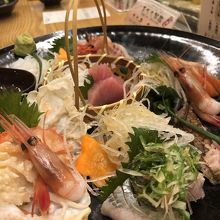 刺身盛りから始まって握りへと。