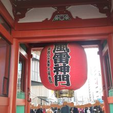 お馴染みの大きな赤い大提灯の前には、記念写真を撮る観光客が次々と寄ってきて大人気でした。門自身は通る(くぐる)ことはできません。浅草寺の総門で900年代からあるそうで、正式名称は「風雷神門」だそうで、ちゃんと大提灯の内側(お寺側)に風雷神門と書かれていました。