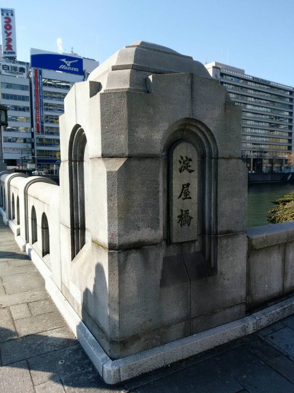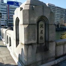 大阪の中心地を流れる土佐堀川と大阪の大動脈である御堂筋が交わるところに架かる橋です。橋の北側には日本銀行大阪支店が、南側には三井住友銀行大阪本店など歴史的建造物が複数あります。また、周辺にはたくさんのオフィスなどがあるので、特に通勤の時間帯は人の波が絶えない橋です。