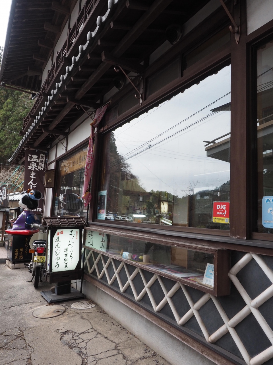 四万温泉郷を散策途中にみつけたお土産物屋さんです。なまこ壁はかわいらしいデザインの軒下の飾りなどがなんともいい雰囲気でした。お店の品ぞろえ自体は特別変わったものはなく、どこにでもある感じではありましたが、他にそれほどお店があるわけではない地区なので、さっとお土産を買いたい人にはよさそうです。
