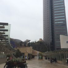 なんばシティの中にあるようなショッピングゾーンで高層マンションもありました。各店舗がガラス張りで、緑も多いので明るく歩きやすいところでした。コドモニアというのがあり、自然の風景を模して子供を遊ばせる室内の場所がありました。