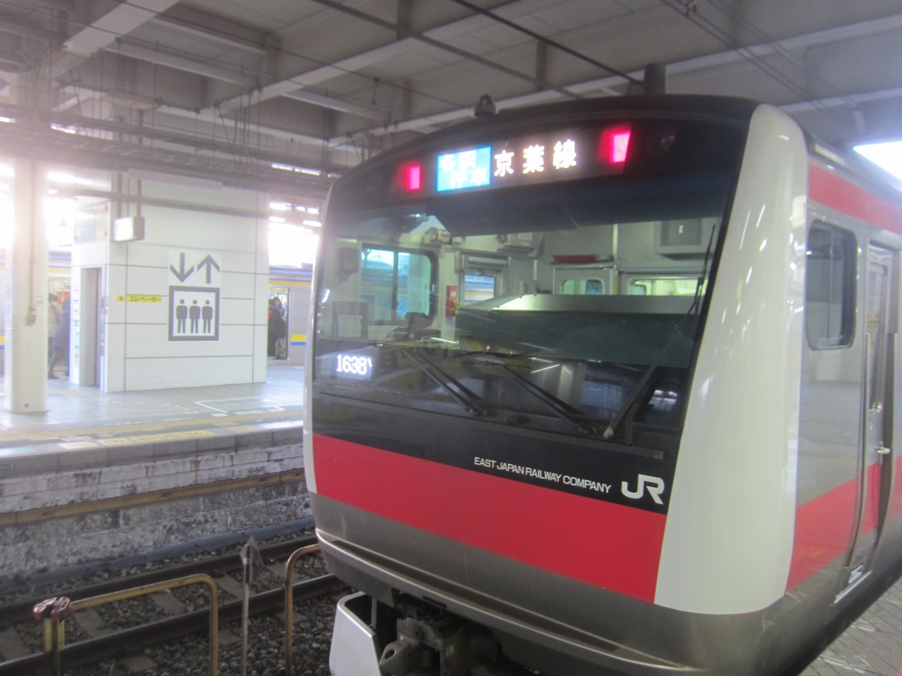東京駅と千葉の蘇我駅を結ぶ路線です。平日の夕方、蘇我から東京まで全線通して乗りました。沿線には東京ディズニーランドもあり、舞浜から乗客が急に増えましたが、混雑と言うほどではありません。電車は海沿いを走るので海も見え、夕焼けに映る富士山のシルエットも見えて、意外と車窓の景色が良かったです。