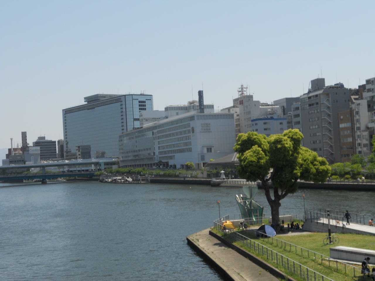 西から東まで散策してきましたが、一番東側の中洲の両サイドを流れる「堂島川」と「土佐堀川」の合流地点まで歩いたら、「大川」を観ることができました。