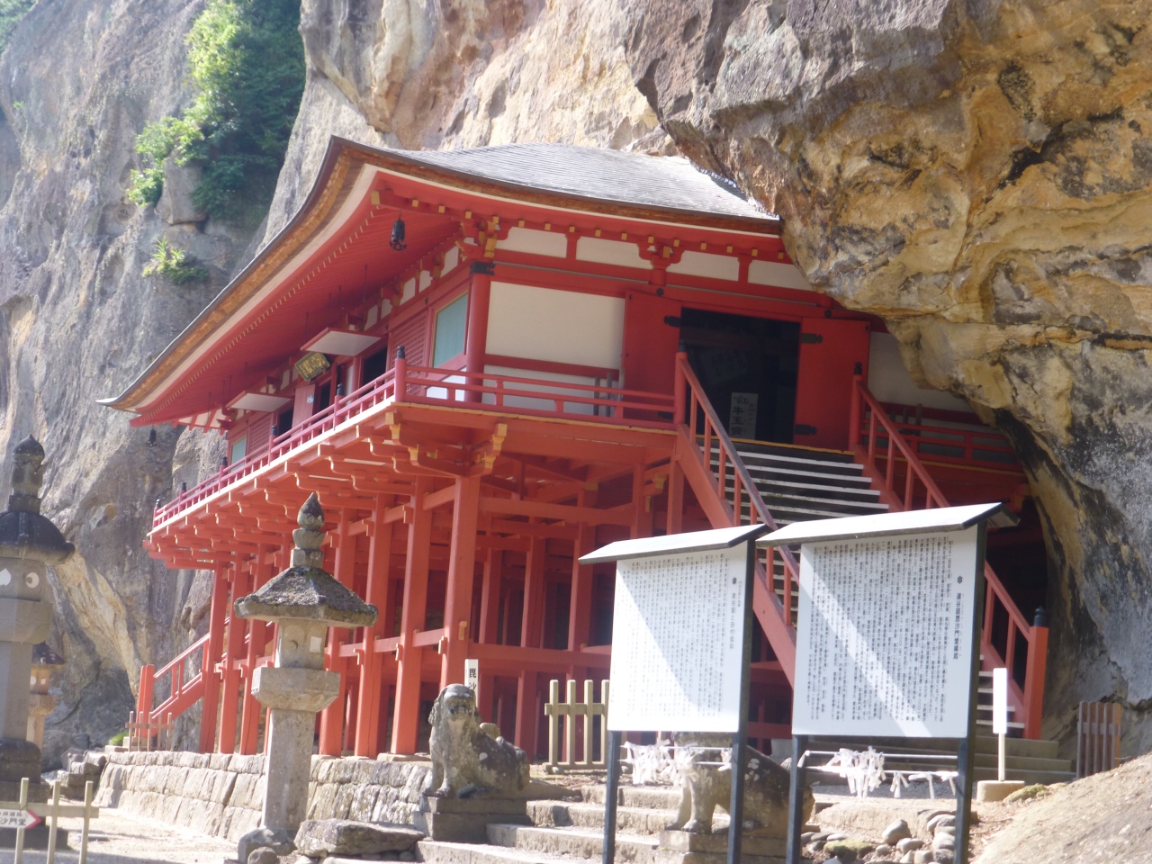 今にも岩に飲み込まれそうな毘沙門堂。