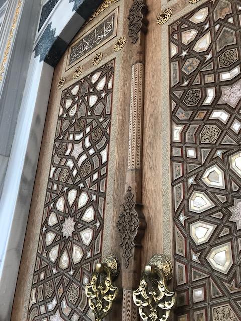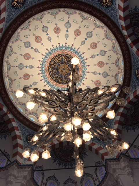2階にはアラベスク模様やコーランの言葉が描かれた装飾が見事な礼拝堂があります。女性はここで髪をスカーフで覆ってから入場しましょう。