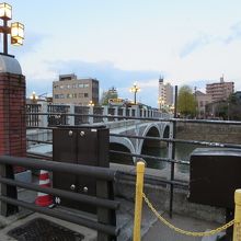 浅野川大橋を挟んで、主計町茶屋街とひがし茶屋街があります。夕方で薄暗くなってくる時に橋を渡りました。橋の上のガス灯のような灯りが点灯していく様子を見ていました。車の交通量は思ったより多く、路線バスも走っていました。橋の下が半円形になっているのが優雅なデザインと思いました。