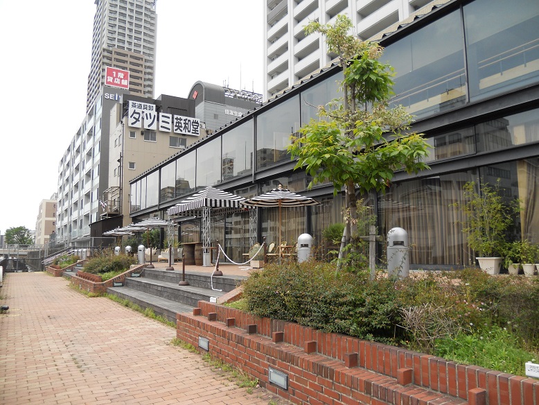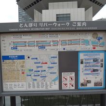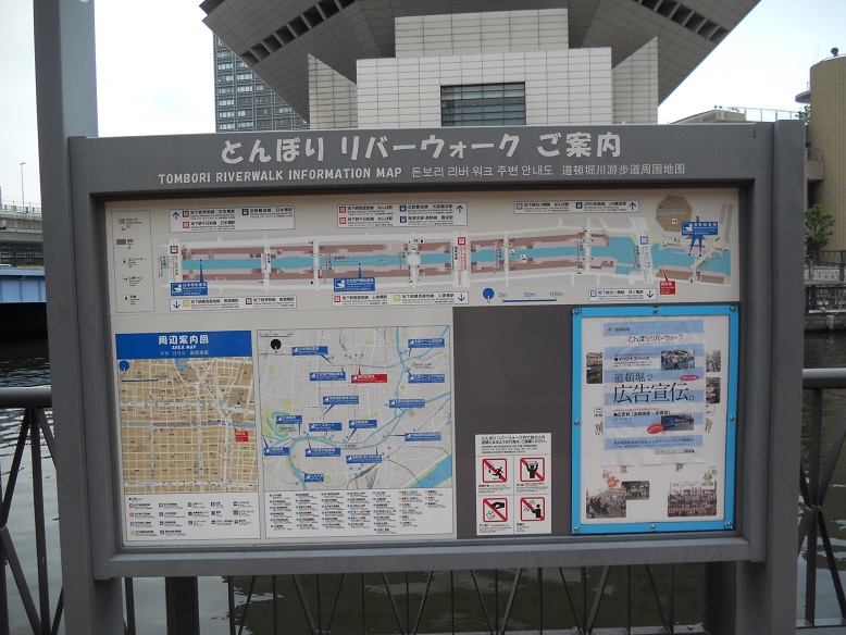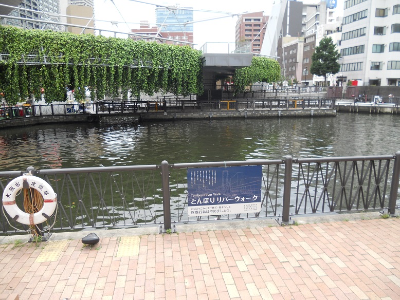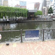 湊町のあたりに「とんぼりリバーウォーク」の看板を発見。