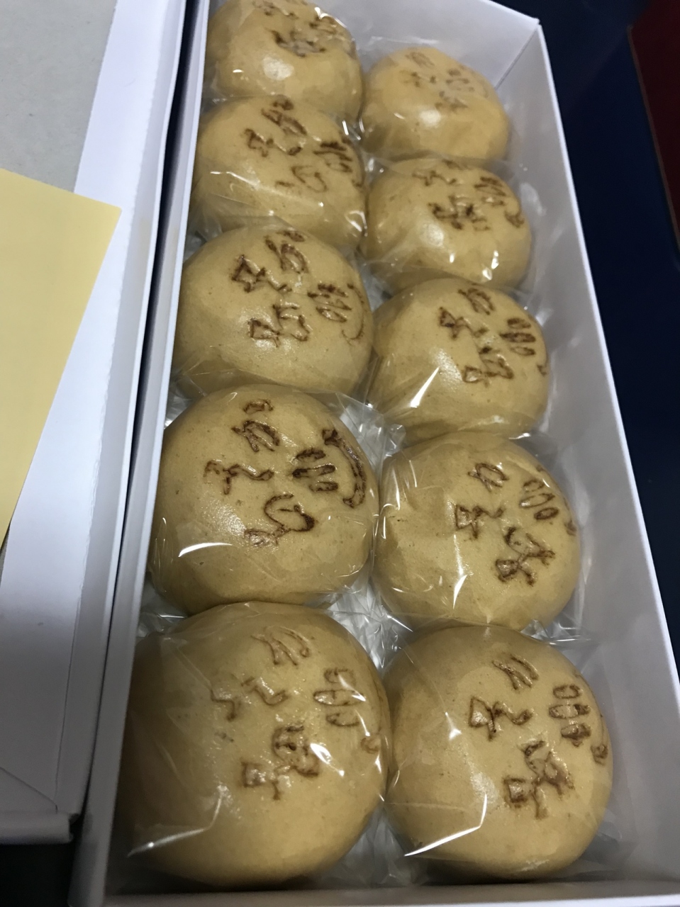 今回はお土産に温泉まんじゅうを買いました。駅のお土産屋で売られているものですが、前回来た時も、昨日の夜よった時も売り切れていたので気になっていました。