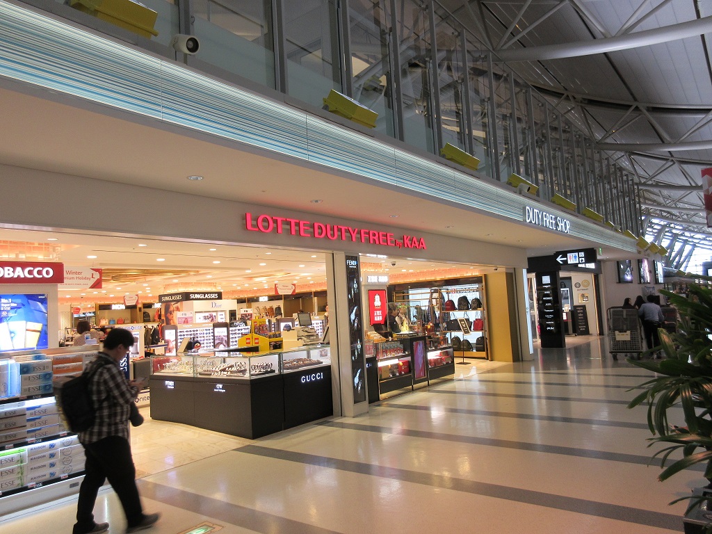 関西国際空港の中で立ち寄った免税店の一つです。ご存知ロッテ系列の免税店で、扱っているアイテムはアルコール、たばこ、時計、化粧品という一般的な品揃えでした。KIX DutyFreeで海外に住む友人へのたばこはすでに購入していたので、ここでは自分用にお酒を物色しました。値段はKix Duty Freeと大差ないですね。
