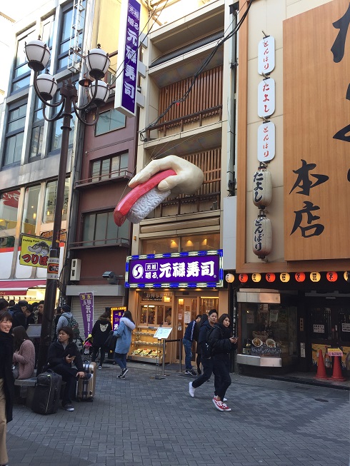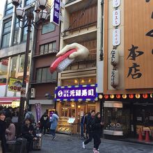 インパクト大の店構えの元祖・回転寿司のお店です。食い倒れで色々と食べたのですがさっぱり酢飯が食べたくなり行きました。ふぐの寿司がありびっくりしました。でもおいしかったです。