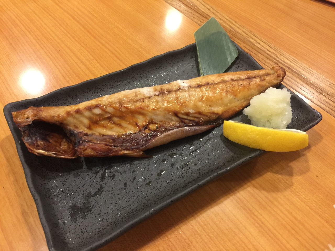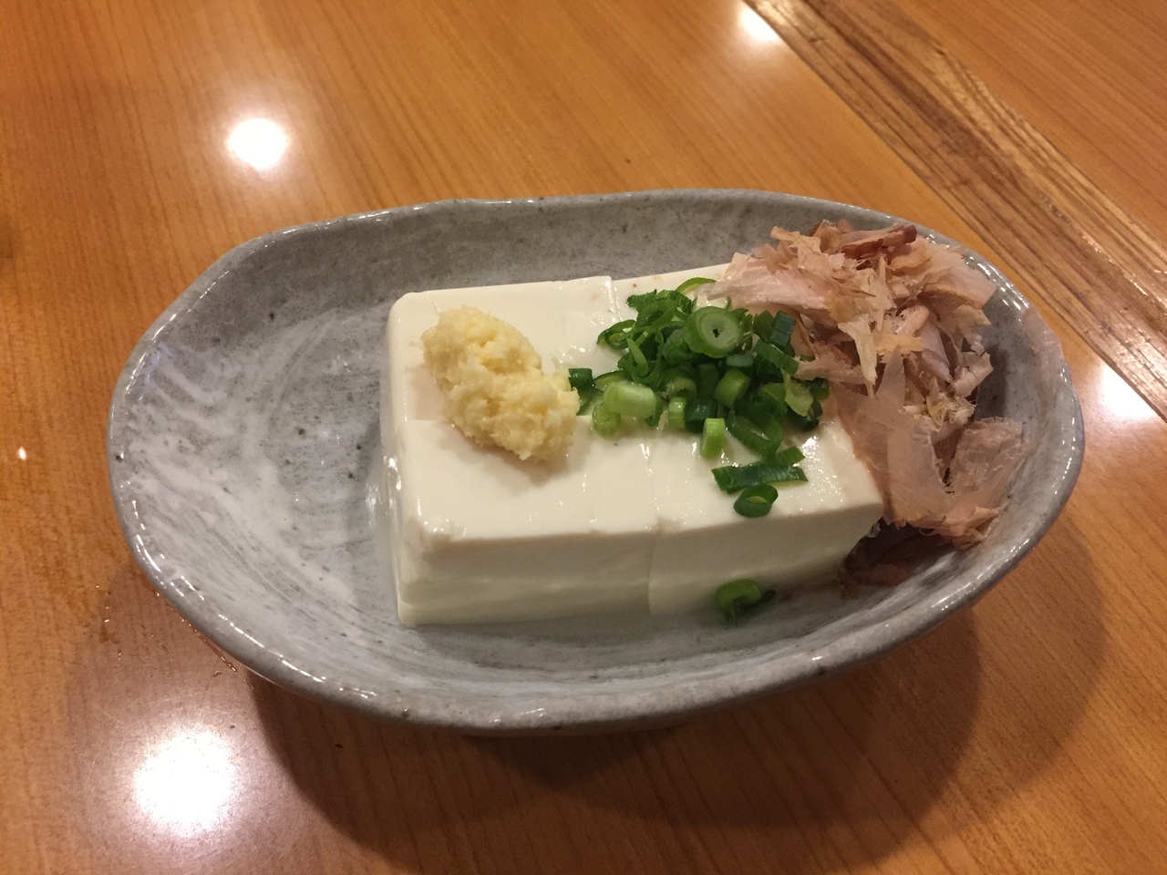 先ずたのんだのは飲み放題!生ビールも含んで2時間1,100円です。料理2品はたのまないといけません。冷奴150円、刺身盛合せ580円、鯖焼き480円。3,00円でお釣りがきます。