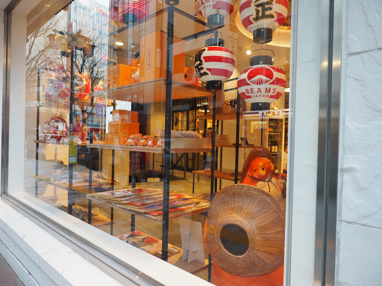 ビームスのセレクトで、アパレル以外に日本の民芸品なども扱っているコンセプトショップです。1月ということもありショーウインドーにはだるまがずらり。おしゃれな和なので、外国人向けのお土産にも喜ばれそうです。フロアごとに扱っている品がいろいろで、上階には日本の民芸品も置かれていました。