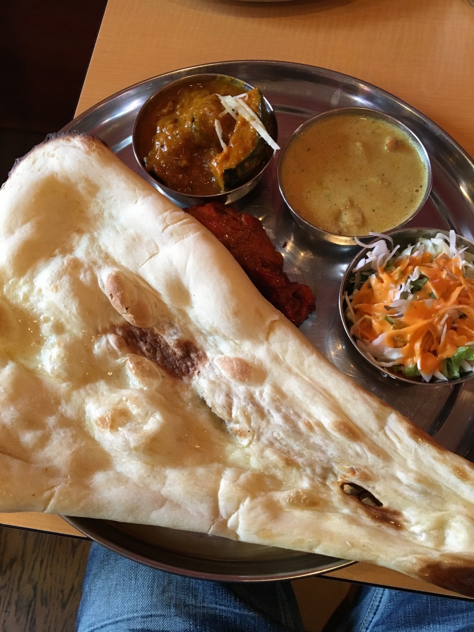 秋葉原駅近くのインドカレーレストラン。休日のランチにやってきました。Cセットはナンとカレー二種類とタンドリーチキンとドリンク、サラダ。これで千円。チーズナンにするとプラス200円。かなりのボリューム。美味い。また来よう。