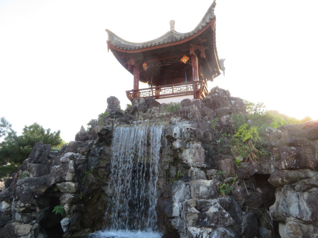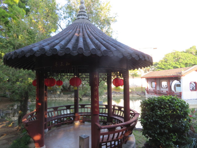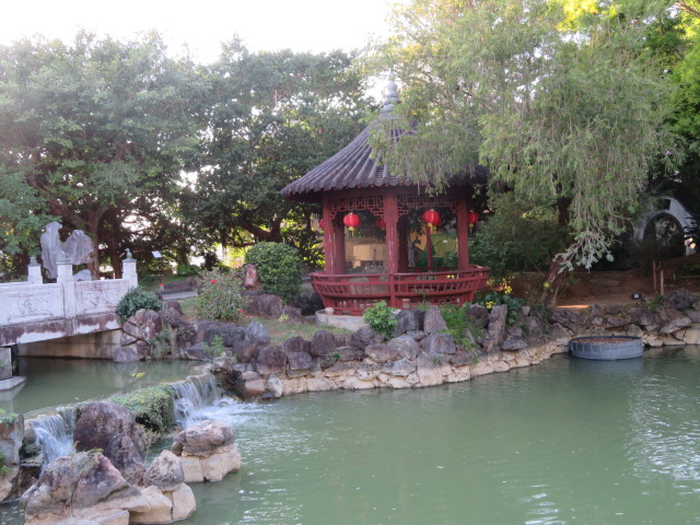 ゆいレール県庁前駅から御成橋通りを10分程歩いて行きました、ちょうど大きな松山公園の西側にありました、中国式の庭園で、中国福州との友好として1992年9月に開園しました、7年前に行った中国・福州を思い出しながら整備されいい雰囲気のお庭を散策しました、入園料200円で楽しめました。